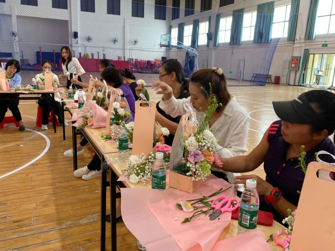 在花艺师的指导下,女教职工们精心制作出一个个精美的花篮。大家围坐在一起,欣赏着自己的作品,脸上洋溢着喜悦之情。她们纷纷拿出手机与作品合影留念,享受这美好的花艺时光。