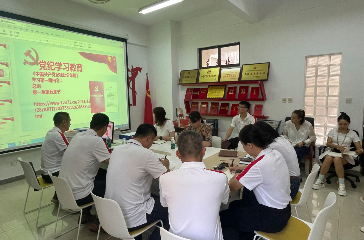 会上,在符运猛、王云富、莫祥德、邝国富同志的领学下,与会人员逐章逐条集中学习了新修订的《中国共产党纪律处分条例》第一编总则的内容,并与未修订的《中国共产党纪律处分条例》进行对比,找出不同。