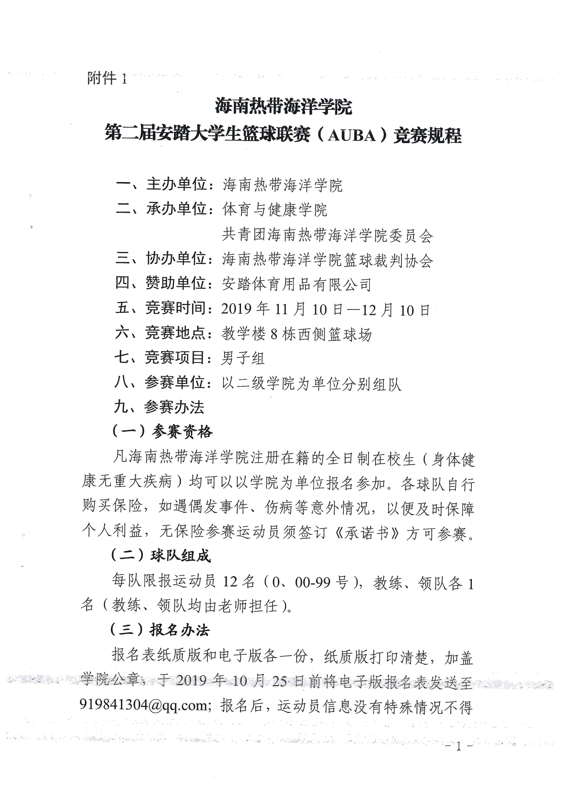 第二届“安踏大学生篮球联赛(AUBA)篮球赛”竞赛规程