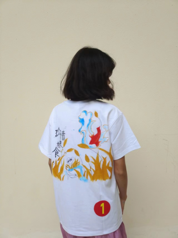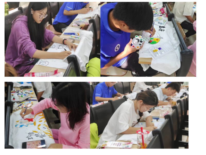 30名参赛人员手持画笔、信心满满、胸有成竹,他们先将准备好的初稿,用铅笔勾勒到T恤上。基本框架搭建好后,每位选手开始发挥各自的想象力,用颜料盘混合颜料,灵动的画笔、绚烂的颜色、多彩的想象,一件件洁白的T恤在选手们的巧手下,变成一幅幅美丽画卷,普普通通的衣服在他们的装扮下,变成一个个艺术品。