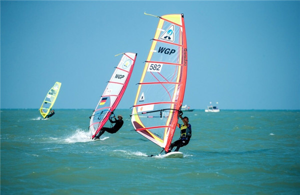 男子队员高飞飞不惧风浪、勇往直前,超越一名又一名选手,争得场地赛男子公开级金组第5名。我校帆板队虽建队不足一年,但能够把握时间和机遇,一战成名。他们利用课余、假期时间,几乎每天承受着强烈的紫外线,坚持在海上刻苦训练。
