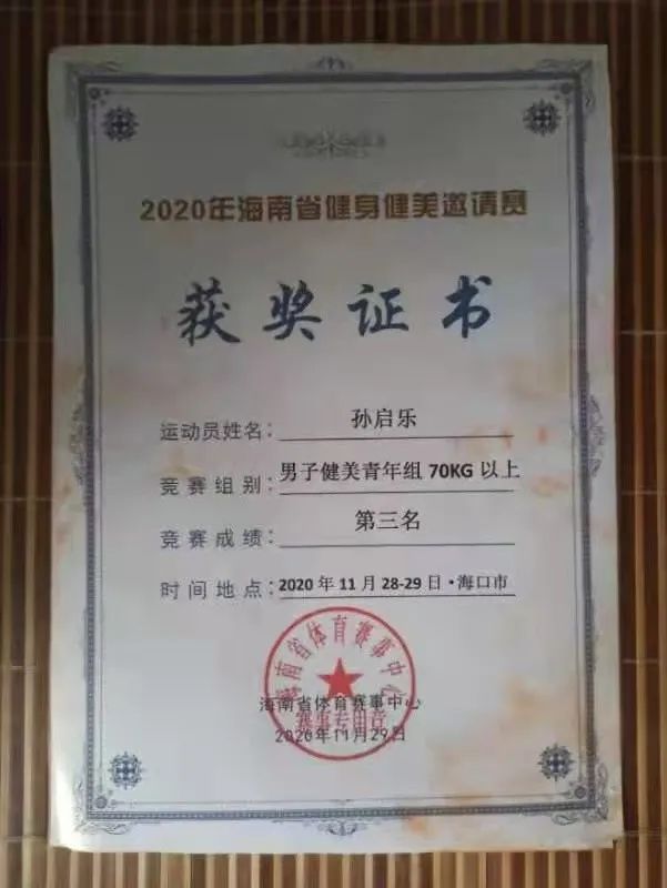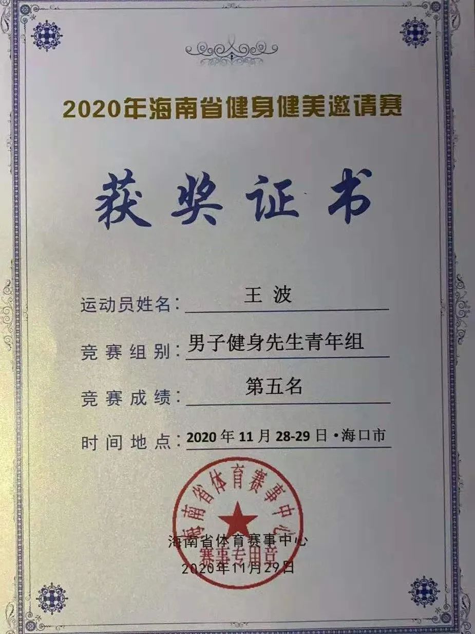 由yl6809永利集团万绍记老师、谢春雨老师共同带队的yl6809永利检测中心健身健美团体斩获了“2020年海南省健身健美邀请赛”团体总分第四名的优异成绩。