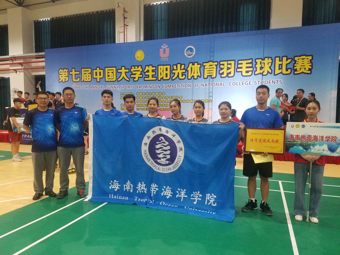我院学生代表学校参加海南省以及国际、国内体育赛事:阿罗哈环海南岛大帆船赛、中国杯帆船赛、中国大学生帆船赛、中华龙舟大赛、中华人民共和国民族运动会、全国大学生高尔夫锦标赛、全国健身锦标赛、健美公开赛、中国龙狮大赛、中国大学生舞龙舞狮锦标赛、全国万人健美操大众锻炼标准大赛、海南省大学生篮球赛、田径赛、足球赛、羽毛球赛、乒乓球赛、沙滩排球赛等均取得优异成绩,在同类院校中拥有较高的知名度。