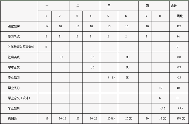 实践性教学环节主要包括入学教育与军事训练(含军事理论)、社会实践、社会调查、学年论文、专业见习、专业实习和毕业论文(设计)。